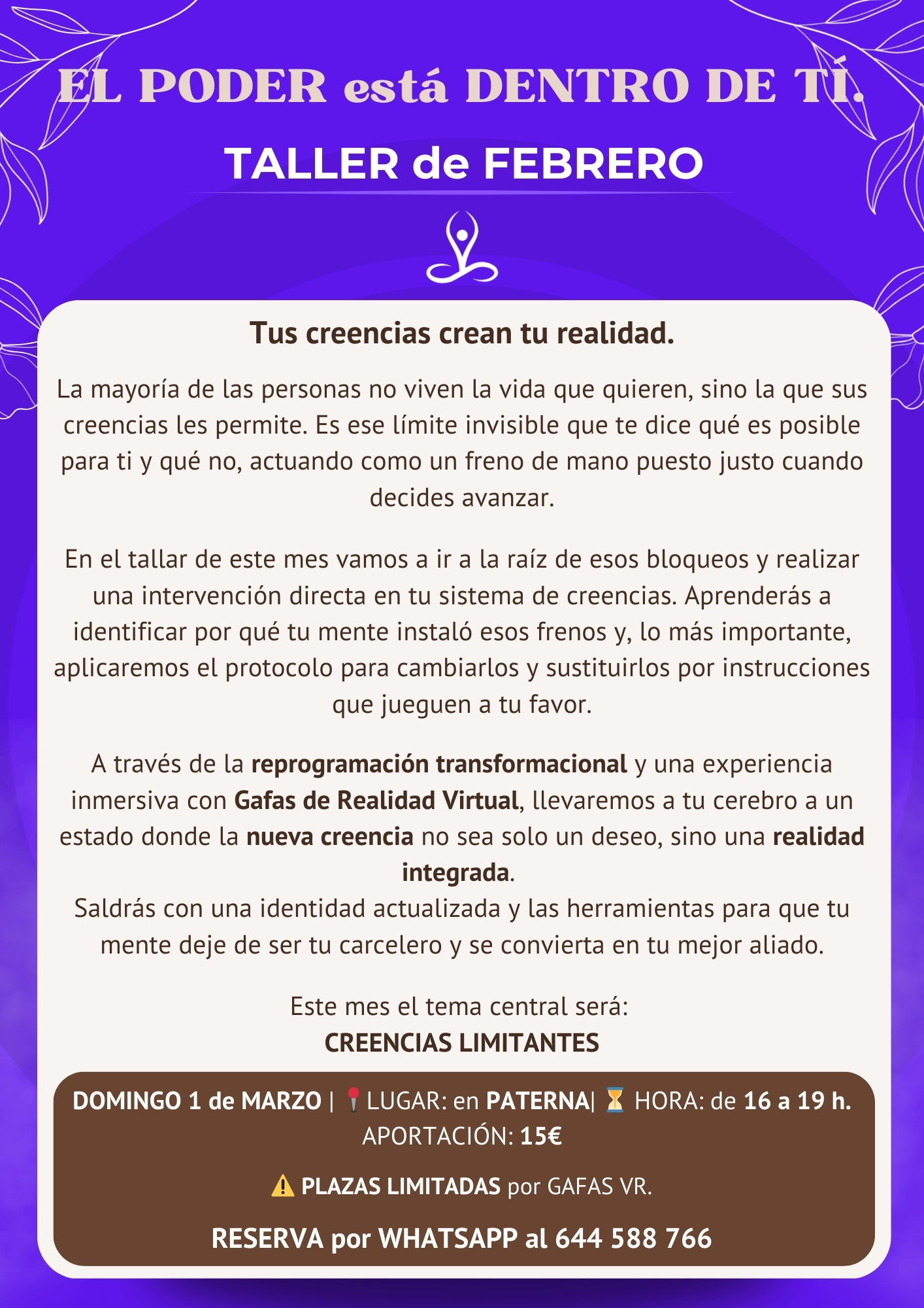 El cambio comienza hoy. Asiste a nuestros Talleres Mensuales. Te entrenaremos para que desde la consciencia y la inteligencia emocional recuperes la armonía, logrando una vida más plena y con mayor bienestar.
